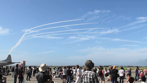 ブルーインパルスは完全復活に向け芦屋から離陸して築城基地でフィールドアクロの訓練をするなど、とにかく凄い気合で今シーズンを過ごしています。負けない気持ちの象徴のようにも見えます。言葉だけじゃなくてね。実際に力強く動いているのが目に見えて分かります。(この1ヵ月後の築城基地航空祭で、アクロ展示が再開されました)