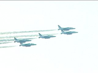 で、ヘリでパレードしてくれました。空自と言ったら信じちゃいそうな画像ですが。陸自です。ほんとです。ウソついてません。信じてください。信じるモノはすくわれるんです。足下を。