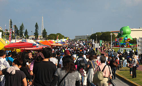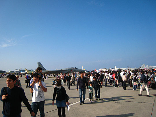 最近、那覇も人が増えてきました。ほんの数年前まで、それこそT-4ブルーが展示飛行を再開してからも、しばらくはすごく余裕のある会場でブルーも余裕で最前列で見られたものでした。入場者数が増えてるのは全国どこの基地でも明かです。なんでだろうね?(^▽^)