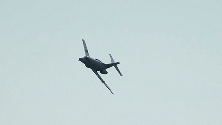 今回はバーティカルな8は諦めて、普通のキューバンエイトになりました。さすがにこのクソ暑い中ではT-4といえどもダブルインメルマンは無理ですかな。。。F-15やF-16でもA/B全開で、1回目のインメルマンの後に少し加速して2回目のインメルマンってのがよくあるパターンですので、それを考えるとスムーズに2回の急上昇をこなすT-4ってのはとんでもない性能を誇ってるって言えますよね。