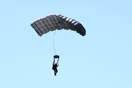 パラシュート、空気で膨らんでるとけっこうふかふかに見えるね。なんか、布団にしたら気持ちよさそうな。(^ー^;