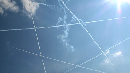 こんなに密集して飛んで煙っぽいモノを出して翼の端からはすぐに消える白い糸を出していて・・・これはUFOといえるかもしれませんね、矢追先生!?