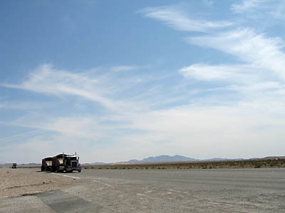 R/W3の延長はこんな感じ。なーんもありゃしません。ただただ広大な大地ですなあ。すごいなあ。写真に写ってるような巨大なトレーラー?トラック?がどこからともなく現れては消え、また現れては消え。じゃんじゃん来ます。