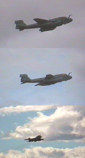 EA-6Bが3機離陸します。2番目の機体は垂直尾翼にスペシャルマーキング。