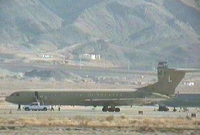 機種でいえばF-16Cですが、はいはい、これは米空軍アクロバット飛行チームThunderBirdsですね。94年に三沢で見て以来です。3機だけでしたが、ピッチアップブレイクからの着陸を見ることができました。この後、もう1機、同じパターンで着陸しました。このThunderBirds、インディアンスプリングすででも訓練してるのでしょうか?