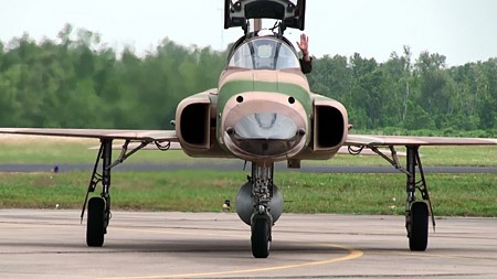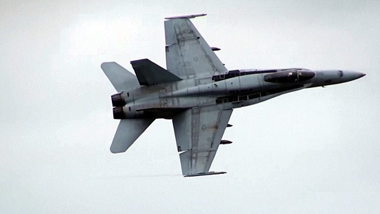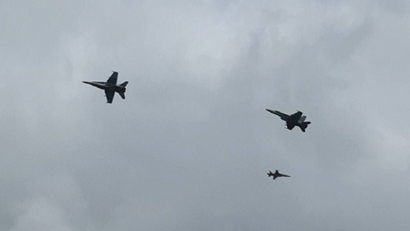 F-5に食らいつくF/A-18。なかなか見応えのある模擬空戦でした。でも近すぎるのでほとんど編隊飛行です。てゆか、性能差ありすぎる機体で空戦なんてほとんどイジメです。