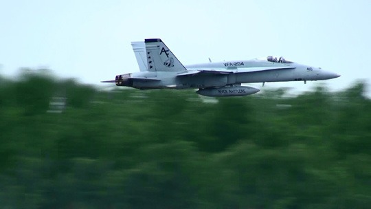 で、さっそく始めましょう!適役・VFC-111のF-5とVFA-204のF/A-18がヘッドオンですれ違います!