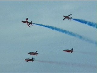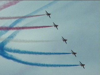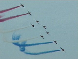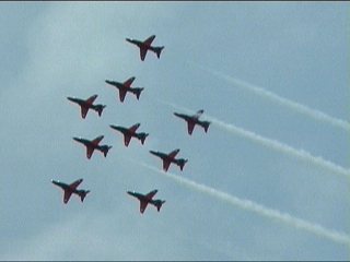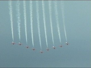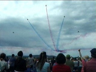 なんにしても、レッドアローズ。さっきのブルーズのアメリカンスタイルとは違い、スタートからいきなり大編隊での大技が続くヨーロピアンスタイルです。違いがよく分かって面白いです。