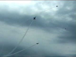 はい、揃いました!ところでこんな天気なのにばっちりハイショーでしたよ。しかも離陸してからショースタートまで民間機の発着を待ってしばらくホールド、その間もループとかしてました。燃料大丈夫なのかなあ。