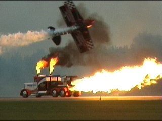 小型アクロと炎の競演。