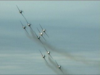 これも不思議機動!4機のボックス系の編隊の間をソロが8の字パターンのバレルロールでくるくるしてます。んん??コークスクリューの発展版??やるな鼠先輩。