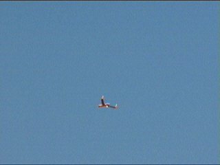つづいては一番つまらなかった(笑)無人偵察機、ScanEagle。ボーイング製なんですね。もったいぶった効果音をながし、結構長い間飛んでた割にチビッコいのと薄っぺらいのと遠いのでぜんっぜん見えないの。苦労して撮ったのがこのショット。なんだよー。(^^;) でもこれが、今回のハイライトの一つだそうです。ヨーロッパのエアショーで無人機が飛んだのは初めてだそうで…。そういや私も無人機の飛行は初めて見たかもしれません。ちなみに、会場を偵察していたそうです。(笑)まあいいか、変わったものが見られました♪最後の回収が一番面白かった。木に引っかかったように見えたもん。(爆笑)