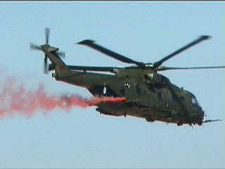 次はなんかでかいヘリ!HC3だそうです!イギリス軍機です。赤いスモークを炊いてくれました。