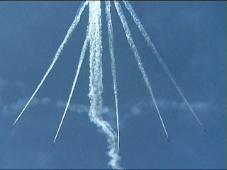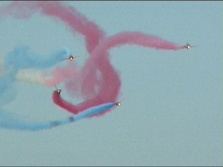 ちょっと写真じゃ分かりにくいですが、Corkscrewです!これはすごい!カリプソ状態の2機を、さらに別の2機がお互い左右逆方向のロールで巻くんです!!やりすぎ!?
