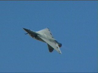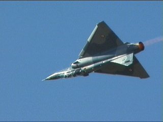 と、離陸だけしておいていきなりこれが飛びました、ミラージュ2000!昨年に引き続くフランス空軍登場です!パトルイユ・ド・フランスはー?
