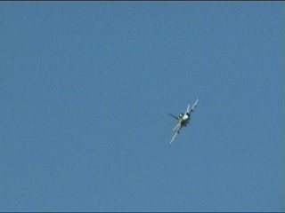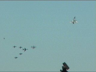 ほら、ほんとに軽〜く急上昇!あっちのほうからさっきのファルコンとホークが編隊でやってきました。