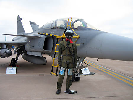 んで、お初です。グリペンさん。マネキンが立ってました。人が入ってたのかな。入ってないよね。入ってたとしたらお疲れさま。なんか、複座と単座の2機が展示されてました。なんかたくさんグリペンさんいたいね。なぜか日本で大人気。
