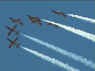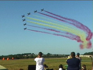 さ、いよいよこの日の締めです!!なんとこの日の締めはスペイン空軍アクロバット飛行チーム、パトルーラ・アギラでした。