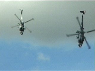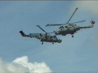 イギリス海軍のヘリコプターデモチーム、ブラックキャッツです。あっち側の機体、派手な塗装してます。