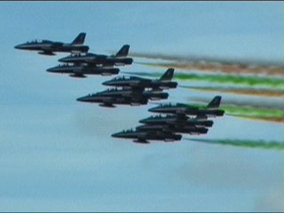 でたー!!世界最高のハイテンションアクロチーム、イタリア空軍フレッチェトリコローリです!