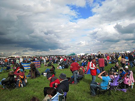 会場はこんな感じ。芝生があって、ノンビリしてます。でも晴れるとめっちゃ暑いんだ。そして雨降るとぐちょぐちょ。脚立、テント、シート、なんでもござれです。その上、ヤツらは身長も高いから手に負えません。ヨーロッパのエアショーはアメリカよりも日本に近い環境のようです。