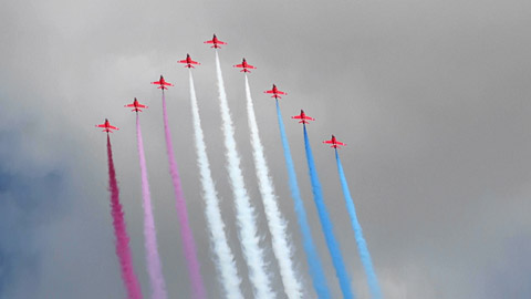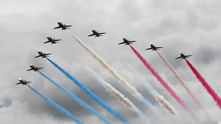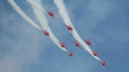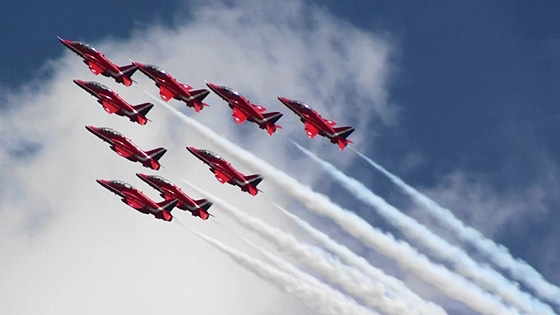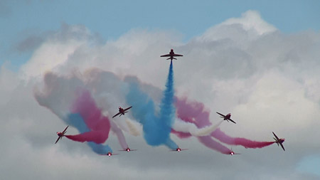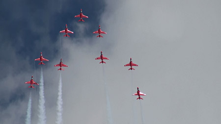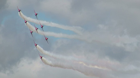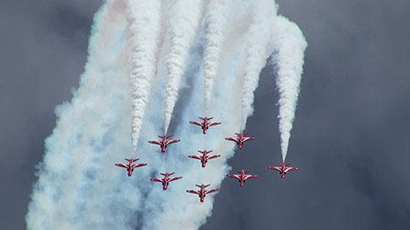 で、いきなりクライマックス!おいおい、急すぎるでしょ!ここではもちろん一番人気、イギリス空軍のレッドアローズ登場です!かっけぇ!!