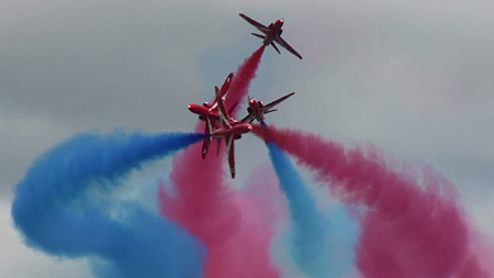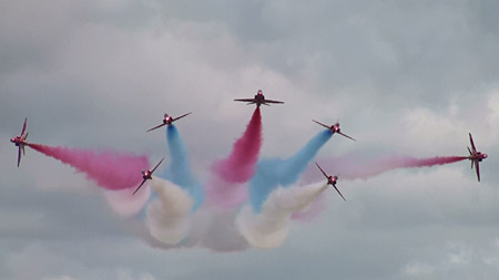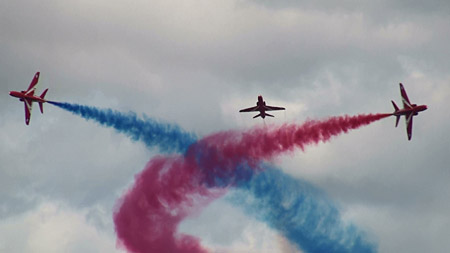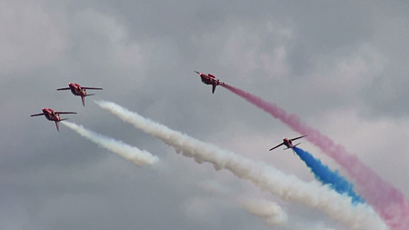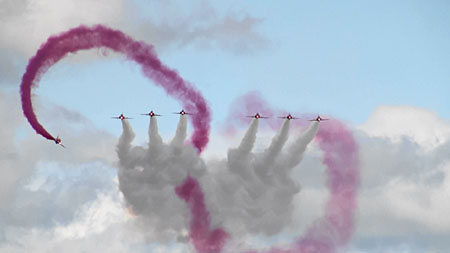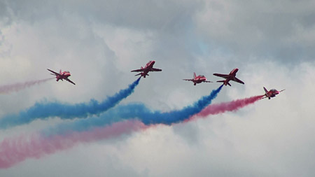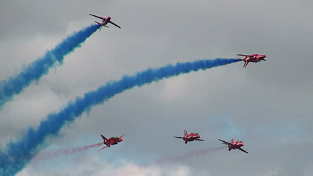 そういや初めてレッドアローズを見た05年から、なんだかんだで毎年見ている気がします。つまり、ですね、イギリスに行けば高い確率で見られます。年間の展示回数が100回を越えるチームですからね。。。どーなってんだか。しかもヨーロッパのショーシーズンは10月には終わってしまいますので、ブルーより1ヶ月以上短いことになります。それで展示回数は5〜6倍以上。そりゃどこででも見られるわけだ。。。カナダ遠征した08年なんて、ついでにアメリカにも渡ってラングレイのエアショーとかに参加しちゃいましたしね。さすがだ。