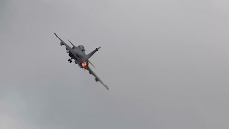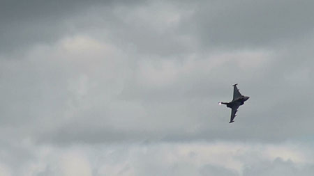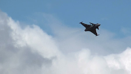 これどこだっけ?スウェーデンのグリペンかな。ふんがりーのはさっき飛んでたから、きっとそうだよね。忘れた。
