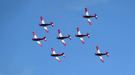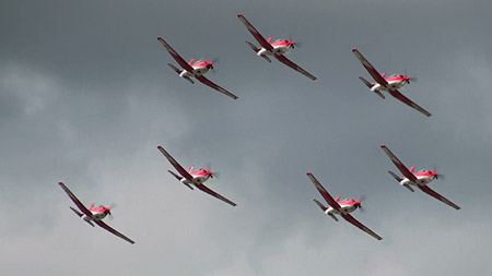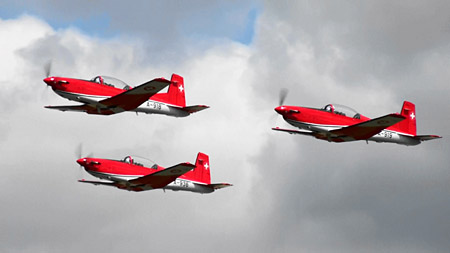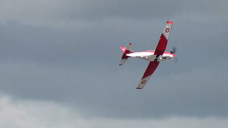 スイス空軍といえばF-5使用のパトルイユスイスが有名ですが、このPC-7チームも空軍の公式アクロチームです。まあ、あれです。ピラタスの販促部隊です。マジで。PC-7を宣伝して海外に売り込みを計ります。