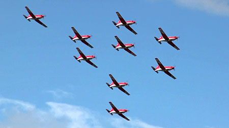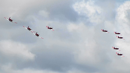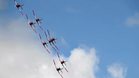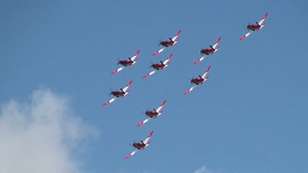 PC-7って単機でのデモとかですごい性能を発揮しますけど、チームでのアクロだとちょっとのんびりし見えてしまいます。もったいない。