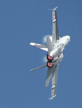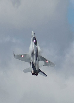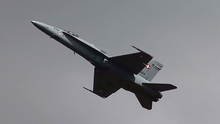 と思ったら、これも離陸した!スイスの-18のデモは定評があります。確かに凄いデモをします。レガシーホーネットとは思えない機動!