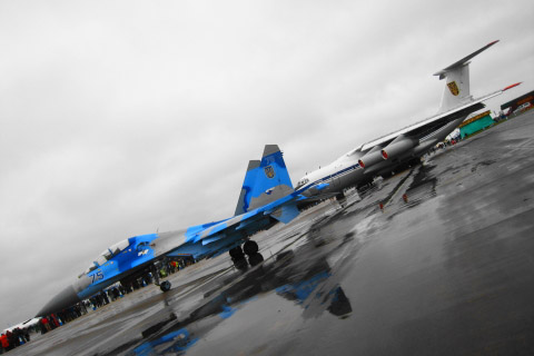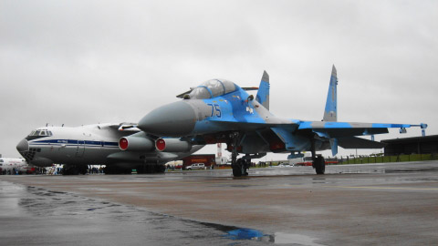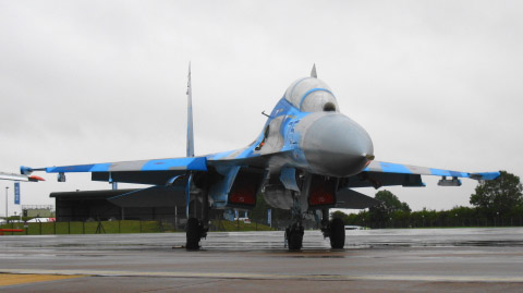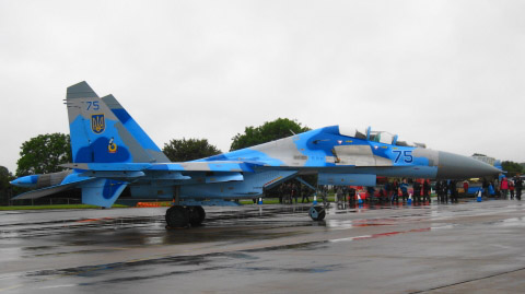 はい、今日はしっかり見ますよ。ウクライナのSu-27.。青、水色、灰色の3色迷彩。なかなかお洒落です。