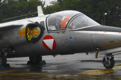 これは日本では見られないなあ、アルファジェット。機首がつんつんに尖がってます。