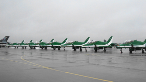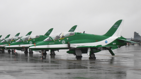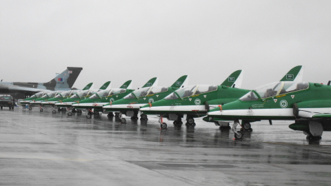 出ましたあ!サウジホークス!!いいですね、いいですね!初ヨーロッパ遠征です!!ご存じ、サウジアラビア空軍のアクロチームです。