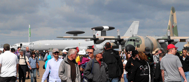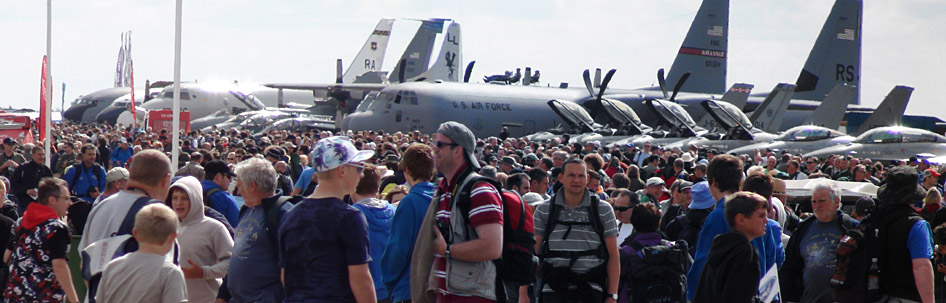 どうですか!RIATの雰囲気!!戦闘機が並び、大型機が並び、人がたくさん!!