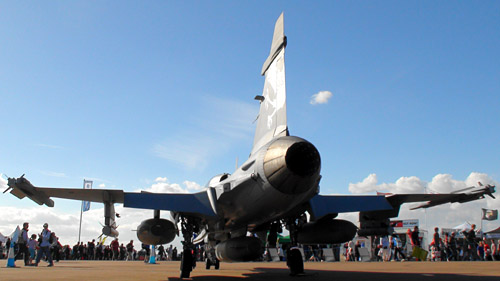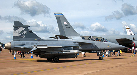 だらだら歩いてたらなんか雑誌で見たことあるやつがいた!!グリペンですけど、今までのグリペンじゃない、スーパーサイヤ人みたいなグリペンです。グリペンNG!!NotGoodのNGじゃないですよ、NewGenerationです。