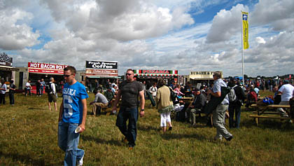 さて、地上展示を一通り見たので(見たつもり;;)、フライトを見ましょう。フライトが見れるエリアにもこうしてたくさんの食べ物が売られています。芝生エリアに椅子とテーブルもあって、なんか長閑ですね。(*^ー^*)