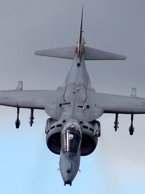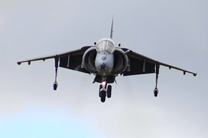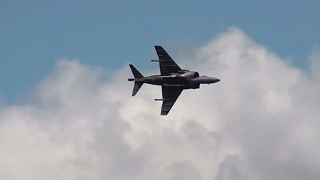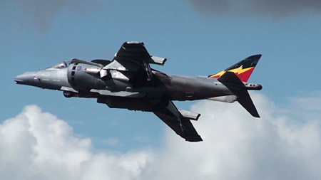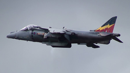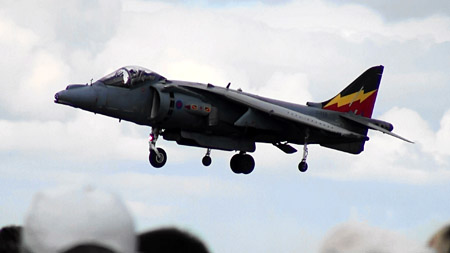 イギリスといえばこれ!ハリアーです!日本でもアメリカ海兵隊機でおなじみですが、オリジナルはイギリス産です。ここでも極短距離の滑走でふわっと離陸して見せました。