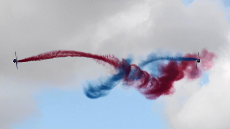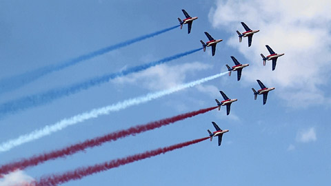 パトルイユ・ド・フランスは毎年比較的大きくショーの内容を変えてきます。それでも、いつもそれぞれの課目が単体で終わらず、ワンポイントの工夫が入ったり、次の演技への繋ぎもループだったりと、プラスワンの機動が入って、全体的に流れるような印象を受けます。