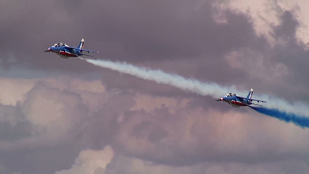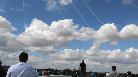 私自身、何度かヨーロッパのエアショーに行ったけど、このチームを見たのは実はまだ4回目です。07年のモスクワで3日間見て以来、実に3年ぶり。何度も見たい見たいと思いつつ、RIATをドタキャンされ、ケベックもドタキャンされ、乗り込んだパリでも飛ばず、なんだかなかなか会えないのです。