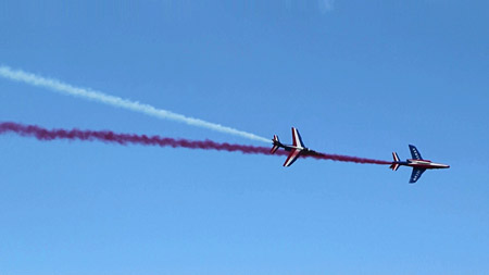 例年、勝手に煩悩と偏見と超主観を前面に押し出したアクロチームランキングを個人的に頭の中でやってますが、いままではレッドアローズが不動のトップだったところ、今年は文句なくこのパトルイユ・ド・フランスをトップに持ってきます!!それほどまでに凄い印象の強いフライトでした。