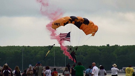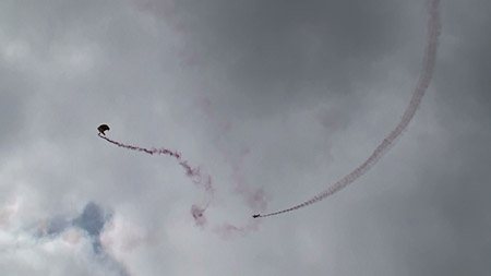 スタートは陸軍のパラシュートチーム・ゴールデンナイツのパラシュートとアクロ機の組み合わせでした。