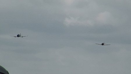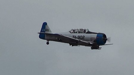 T-6が大戦機に扮して飛び回ります。