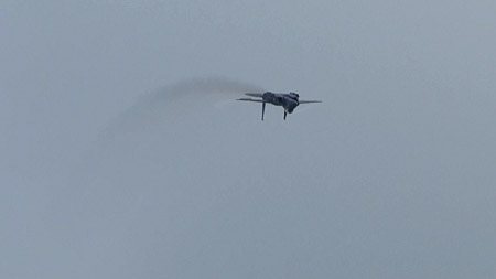 デディケーションパス!濃い灰色の機体のため、白いベイパーが物凄く綺麗に見えます。