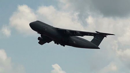 さて、チーム・ロビンズフライバイと銘打って、いろんな機体が上がりました。これも飛んでる姿は初めて見た!C-5です!でかいなあ!!!