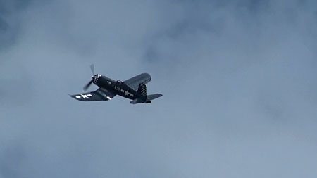 と思ってたら、もっと古そうなのが離陸しました!F4Uですか?そうそう、プログラムにF-4(ヘリテイジフライト)てかいてあって、しかもポスターにファントムの絵があったから、てっきりファトムが飛ぶと思ったのに飛ばなくて。。。で、こおF4が飛んだというオチが;;