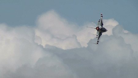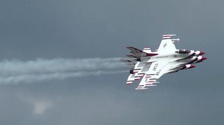 360度回った頃、後方からソロ2機が轟音を響かせて凄い勢いで飛び抜けていきます。これも、ビックリさせられるポイントです。バーズのフライトはビックリポイントが多いのも特徴ですね。技術的にはブルーズやブルーが若干上回るかも知れないけど、盛り上げならバーズが群を抜いています。アクロの醍醐味って、まず「楽しい、凄い」ってのもあると思うんですよね。それなら、こういう演出で楽しませてくれるバーズってやっぱりNo.1じゃないかと思いました。