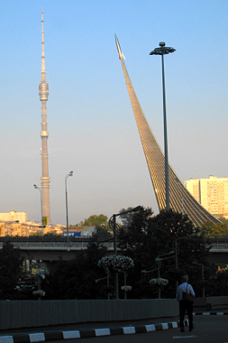 モスクワに来るたびにレポに載せています、オスタンキノテレビのタワーと、手前の宇宙博物館?のモニュメント。これを見るとロシアに来たなあ、、、と個人的に思う(笑)
