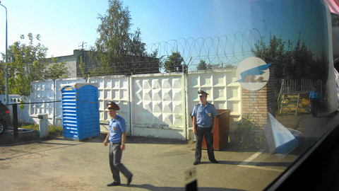 はい、警備の厳しいジュウスキー飛行場にいよいよ入ります。。。どきどき。ここで警備の兵がバスに乗ってきて、チケットチェックがありました。