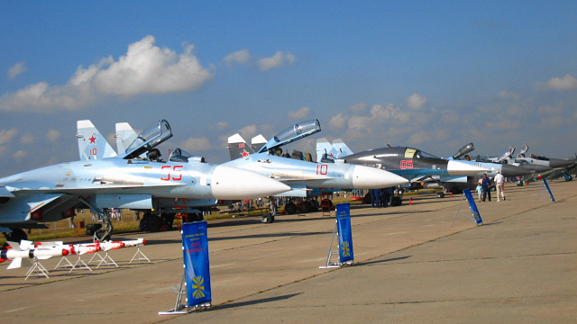 ところで名前の出てこなかったSu-28はSu-25のダウングレード版、Su-29、Su-31は、小型のアクロ機です。ここには並ばないなあ。Su-32は、、、まあ、Su-34とおんなじようなもの;;